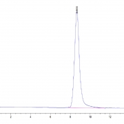 The protein has a predicted MW of 28 kDa. Due to glycosylation, the protein migrates to 40-45 kDa based on Tris-Bis PAGE result.