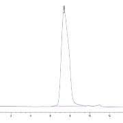 The protein has a predicted MW of 34.7 kDa. Due to glycosylation, the protein migrates to 90-110 kDa based on Tris-Bis PAGE result.
