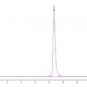 The protein has a predicted MW of 22.51 kDa. Due to glycosylation, the protein migrates to 40-50 kDa based on Tris-Bis PAGE result.