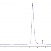 The protein has a predicted MW of 65.47 kDa. Due to glycosylation, the protein migrates to 70-80 kDa based on Tris-Bis PAGE result.