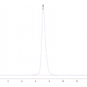 The protein has a predicted MW of 54.14 kDa. Due to glycosylation, the protein migrates to 70-100 kDa based on Tris-Bis PAGE result.