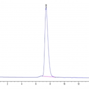 The protein has a predicted MW of 27.1 kDa. Due to glycosylation, the protein migrates to 40-52 kDa based on Tris-Bis PAGE result.