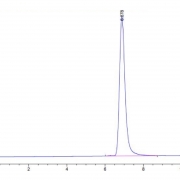 The protein has a predicted MW of 258 kDa. Due to glycosylation, the protein migrates to 260-265 kDa under Non reducing (N) condition based on Tris-Bis PAGE result.