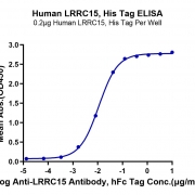 Immobilized Human LRRC15, His Tag at 2ug/ml (100ul/Well) on the plate. Dose response curve for Anti-LRRC15 Antibody, hFc Tag with the EC50 of 11.1ng/ml determined by ELISA. See testing image for detail.