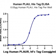Immobilized Human PLAU, His Tag at 0.5ug/ml (100ul/Well) on the plate. Dose response curve for Human uPAR, hFc Tag with the EC50 of 11.9ng/ml determined by ELISA. See testing image for detail.