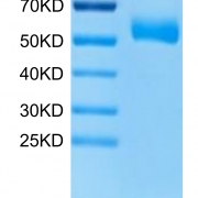 The protein has a predicted MW of 45.97 kDa. Due to glycosylation, the protein migrates to 50-70 kDa based on Tris-Bis PAGE result.