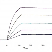 Immobilized Human RANKL, No Tag at 2ug/ml (100ul/well) on the plate. Dose response curve for Human TNFRSF11A, hFc Tag with the EC50 of 7.6ng/ml determined by ELISA (QC Test). The affinity constant of 0.030 nM as determined in SPR assay (Biacore T200). See testing image for detail.