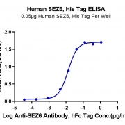 Immobilized Human SEZ6, His Tag at 0.5ug/ml (100ul/well) on the plate. Dose response curve for Anti-SEZ6 Antibody, hFc Tag with the EC50 of 13.2ng/ml determined by ELISA. See testing image for detail.