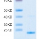The protein has a predicted MW of 71.83 kDa. Due to glycosylation, the protein migrates to 73-83 kDa based on Tris-Bis PAGE result.