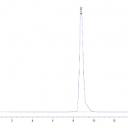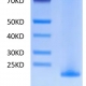 The protein has a predicted MW of 53.64 kDa. Due to glycosylation, the protein migrates to 55-70 kDa based on Tris-Bis PAGE result.