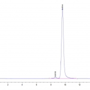 The protein has a predicted MW of 26.29 kDa. Due to glycosylation, the protein migrates to 30-35 kDa based on Tris-Bis PAGE result.