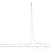 The protein has a predicted MW of 24.9 kDa. Due to glycosylation, the protein migrates to 30-40 kDa based on Tris-Bis PAGE result.