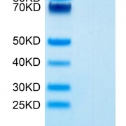 The protein has a predicted MW of 189.5 kDa. Due to glycosylation, the protein migrates to 235-250 kDa based on Tris-Bis PAGE result.