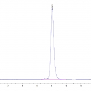 The protein has a predicted MW of 40.1 kDa. Due to glycosylation, the protein migrates to 55-65 kDa based on Tris-Bis PAGE result.