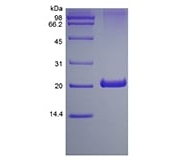 Approximately 17.7 kDa, a single non-glycosylated polypeptide chain containing 166 amino acids.