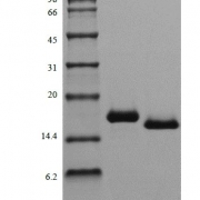 We recommend that this vial be briefly centrifuged prior to opening to bring the contents to the bottom. Reconstitute in sterile distilled water or aqueous buffer containing 0.1 % BSA to a concentration of 0.1-1.0 mg/mL. Stock solutions should be apportioned into working aliquots and stored at ≤ -20 °C. Further dilutions should be made in appropriate buffered solutions.