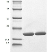We recommend that this vial be briefly centrifuged prior to opening to bring the contents to the bottom. Reconstitute in sterile distilled water or aqueous buffer containing 0.1 % BSA to a concentration of 0.1-1.0 mg/mL. Stock solutions should be apportioned into working aliquots and stored at ≤ -20 °C. Further dilutions should be made in appropriate buffered solutions.