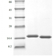 We recommend that this vial be briefly centrifuged prior to opening to bring the contents to the bottom. Reconstitute in sterile distilled H2O to a concentration of 0.1-1.0 mg/mL. Stock solutions should be apportioned into working aliquots and stored at ≤ -20 °C. Further dilutions should be made in appropriate buffered solutions. Do not reconstitute in cell culture media directly.