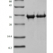 Approximately 29.6 kDa, a single non-glycosylated polypeptide chain containing 264 amino acids.