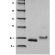 CCL2, also named monocyte chemotactic protein-1 (MCP-1) and small inducible cytokine A2, is a small cytokine that belongs to the CC chemokine family. It is a monomeric polypeptide, with a molecular weight of approximately 13 kDa and it is anchored in the plasma membrane of endothelial cells by glycosaminoglycan side chains of proteoglycans. Research shows that CCR2 and CCR4 are two cell surface receptors that bind CCL2. CCL2 exhibits a chemotactic activity for monocytes and basophils. However, it does not attract neutrophils or eosinophils. CCL2 has been implicated in the pathogenesis of diseases characterized by monocytic infiltrates, like psoriasis, rheumatoid arthritis or atherosclerosis and it may be involved in the recruitment of monocytes into the arterial wall during the disease process of atherosclerosis. Mature human CCL2 shares 78-79 % a.a. identity with canine, porcine and equine CCL2, while mouse and rat express a form of CCL2 that is extended by 49 a.a. and shares only ~56 % a.a. identity within the common region.