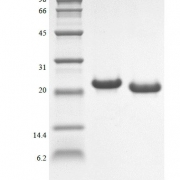 We recommend that this vial be briefly centrifuged prior to opening to bring the contents to the bottom. Reconstitute in sterile distilled water or aqueous buffer containing 0.1 % BSA to a concentration of 0.1 mg/mL. Stock solutions should be apportioned into working aliquots and stored at ≤ -20 °C. Further dilutions should be made in appropriate buffered solutions.