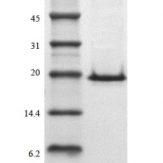 Approximately 18.7 kDa, a single, non-glycosylated polypeptide chain containing 163 amino acids.