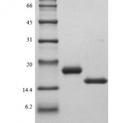 We recommend that this vial be briefly centrifuged prior to opening to bring the contents to the bottom. Reconstitute in sterile distilled water or aqueous buffer containing 0.1 % BSA to a concentration of 0.1-1.0 mg/mL. Stock solutions should be apportioned into working aliquots and stored at ≤ -20 °C. Further dilutions should be made in appropriate buffered solutions.