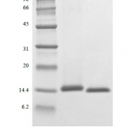 Approximately 14.9 kDa, a single non-glycosylated polypeptide chain containing 129 amino acids.